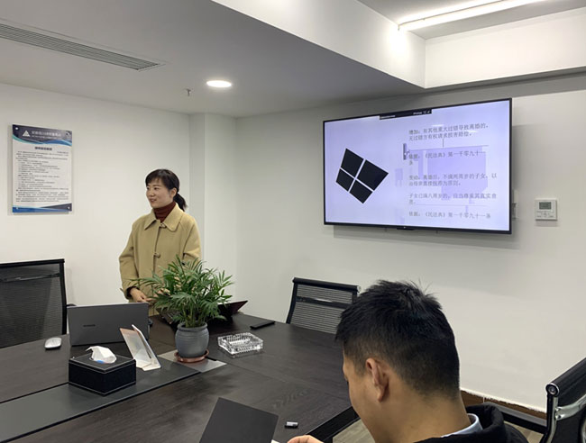 发布人:管理员 发布时间:2020-12-17 浏览次数:2020年12月17日上午10:30 ,安徽晟川律师事务所法律讲堂第二期《民法典》系列第九场如期举行。本场由资深执业律师程慧律师主讲,为我们讲解的主题是《民法典》之婚姻家庭编,各位专职律师及实习律师参加了此次学习与交流。
