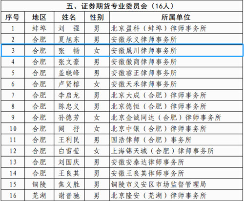 热烈祝贺安徽晟川律师事务所张畅律师当选安徽省律师协会第十届证券期货专业委员会委员。