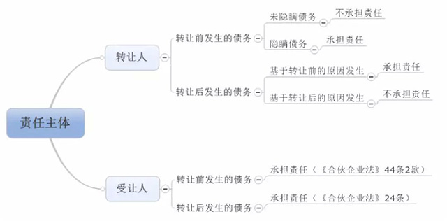 普通合伙份额的转让涉及到两个责任主体:转让人与受让人,其责任承担情况可见下图,具体分析详见下文律师点评。
