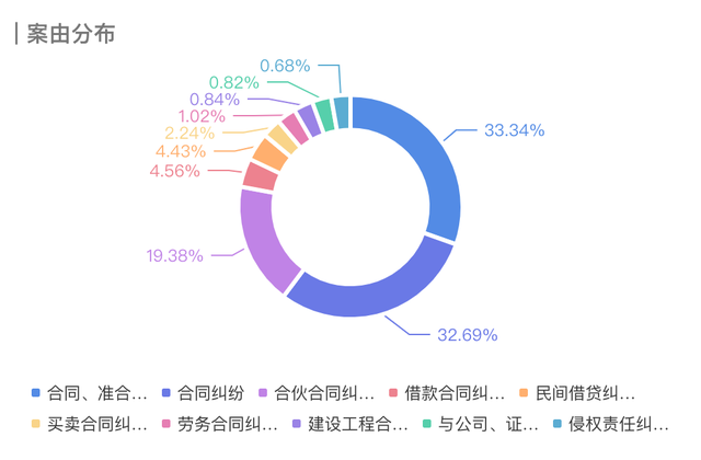 下图为以“书面合伙协议”为关键词检索出来的相关案例的案由分布: